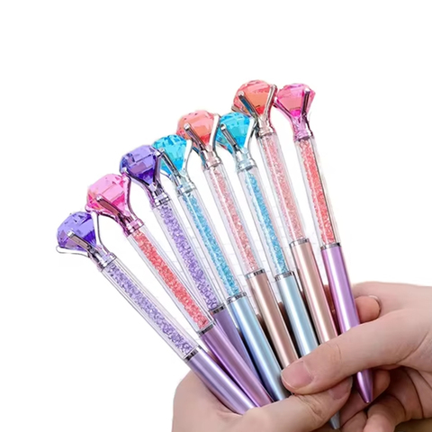 रचनात्मक इमी-टेशन मेटल रॉड डायमंड बॉलपॉइंट पेन रंगीन क्रिस्टल रेत रत्न पुरस्कार उपहार पेन प्लास्टिक से बना